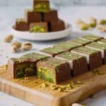 Experience the luxurious fusion of crispy kataifi, rich pistachio cream, and smooth chocolates with this homemade Dubai Chocolate Bar. This indulgent treat, inspired by the popular dessert sensation, combines the crunchy texture of golden-browned kataifi dough with creamy pistachio paste and luscious layers of milk and white chocolate, elevated by a subtle hint of tahini. Perfect for impressing guests or satisfying your chocolate cravings, this dessert is easier to prepare than you think!
