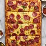- Vegetarian Twist: Swap the pepperoni for roasted veggies like mushrooms and bell peppers and add fresh basil for a garden-fresh version.