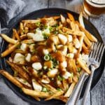 - Assemble the poutine: Place all fries on a serving platter. Distribute half of the cheddar cheese curds evenly among the fries. Ladle hot gravy generously over the fries and curds to start melting the cheese. Add the remaining curds on top, pour more gravy, and finish with sliced scallions. Serve immediately while hot and melty.