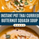 This Instant Pot Thai Curried Butternut Squash Soup is a creamy, flavorful, and comforting dish perfect for a cozy fall meal. Made with butternut squash, red curry paste, almond butter, and rich coconut milk, this gluten-free and healthy soup infuses bold Thai flavors and is easy to prepare with the Instant Pot for a quick, satisfying dinner.
