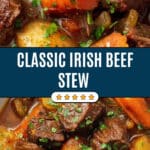 This traditional Irish Beef Stew features tender chunks of beef chuck simmered with carrots, celery, parsnips, and potatoes in a rich broth made with Guinness stout, red wine, and beef stock. Enhanced with fresh herbs and cooked slowly to perfection, this comforting stew offers a hearty and flavorful meal perfect for chilly days.