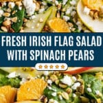 Irish Salad, also known as Irish Flag Salad, is a fresh and vibrant dish featuring layered colors reminiscent of the Irish flag with spinach, pears, oranges, feta cheese, pistachios, and fresh basil, all tossed in a light citrus vinaigrette.
