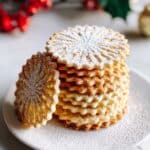 Classic Italian Pizzelle are thin, crisp waffle cookies flavored with fragrant anise and vanilla, made with simple ingredients and cooked in a pizzelle iron. This traditional family recipe delivers delicate and beautifully patterned cookies perfect for any occasion.