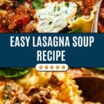 A comforting and flavorful Lasagna Soup featuring browned Italian sausage, ground beef, and broken lasagna noodles simmered in a rich tomato and chicken stock broth, topped with a creamy basil ricotta cheese mixture for the perfect lasagna-inspired meal in a bowl.