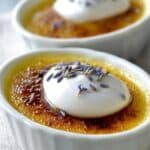 - Serve: Allow the crème brûlées to cool slightly after broiling. Top each with a dollop of the homemade whipped cream and a sprinkling of dried lavender blossoms for a beautiful and fragrant garnish. Serve immediately to enjoy the contrasting textures of creamy custard and brittle caramelized sugar.