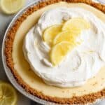 - Topping with sweetened whipped cream adds a light, fluffy contrast to the dense lemon filling.