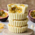 These 3-Ingredient Mango Passionfruit White Chocolate Cups are a delightful no-bake treat combining the creamy sweetness of white chocolate with the tropical tang of fresh mango and passionfruit. Perfect for a quick dessert or a refreshing snack, they are easy to prepare and visually appealing with a beautiful marbled design on top.