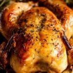 For special occasions, I like to carve the chicken at the table, serving it on a beautiful wooden board surrounded by roasted veggies and garnished with sprigs of herbs and lemon slices. It turns dinner into an event and makes the meal feel even more memorable.