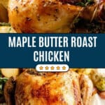 Once it’s done, remove the chicken from the oven and let it rest for 10 to 12 minutes. This resting step is my absolute favorite because it helps the juices redistribute, giving you succulent slices every time. Then carve, plate, and enjoy that amazing maple butter roast chicken with those perfectly roasted veggies soaking up all those wonderful pan juices.