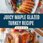 This Best Maple Glazed Turkey recipe features a tender, juicy turkey infused with aromatic herbs, fresh fruit, and a delectable maple glaze, perfect for special occasions. The turkey is roasted to perfection with a buttery and sweet maple spread that enhances its natural flavors, while the aromatics and herbs create a savory, fragrant experience.