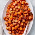 - Watch the Roast Time: Smaller cubes cook faster; keep an eye near the end so they don’t burn but get those coveted caramelized spots.