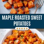 Maple Roasted Sweet Potatoes are a simple and delicious side dish perfect for autumn. Tender cubes of sweet potatoes are tossed with coconut oil, real maple syrup, cinnamon, and kosher salt, then roasted until caramelized and golden brown on the edges. This easy recipe brings a perfect balance of sweetness and warmth, making it an ideal accompaniment for any meal.