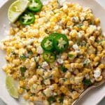 This Mexican Corn Salad is a flavorful and creamy side dish inspired by the popular Mexican street food Esquites. Featuring golden-browned corn kernels sautéed with garlic and butter, then tossed in a tangy, creamy dressing of mayonnaise, sour cream, lime juice, and parmesan cheese. Fresh herbs, onions, and optional jalapenos add brightness and spice, while crumbled Cotija or Feta provides a salty finish. Perfect served warm or at room temperature, this salad pairs beautifully with Mexican or Southwestern dishes.