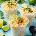 I generally don’t recommend freezing the fully dressed corn cups because the creamy sauce can separate and the texture changes. However, you can freeze plain cooked corn (without sauce) for later use, then add your mayo mixture fresh when you’re ready to enjoy.