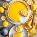This Meyer Lemon Tart (Tart Au Citron) features a crisp, buttery crust with a rich, creamy, and tangy lemon filling made from fresh Meyer lemon juice and zest. Its vibrant citrus flavor and smooth texture make it a delightful dessert perfect for any occasion.
