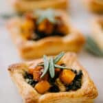 When you’re ready, pop the baking sheets into a 400°F oven for 12-14 minutes, or until puff pastry has beautifully risen and turned golden brown. Remove from the oven, sprinkle with remaining fresh sage, and serve warm or at room temperature. Seriously, they’re perfect either way!