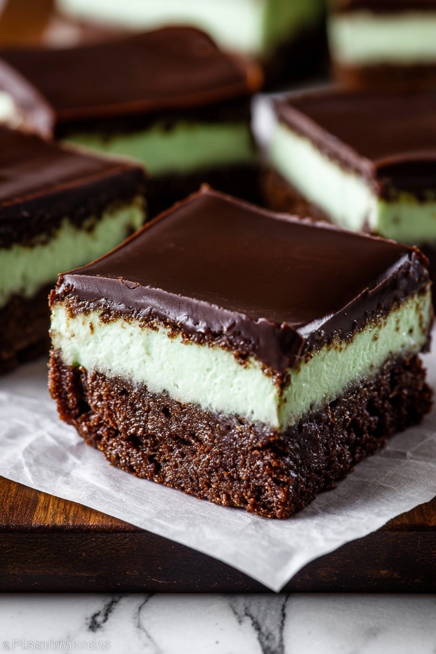 Refrigerate your frosted brownies for at least an hour so the mint layer firms up. This step saves your sanity when spreading the chocolate – the frosting holds firm and doesn’t mix with the chocolate topping.