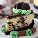 This decadent Mint Oreo Cheesecake is a rich and creamy dessert featuring a gluten-free mint Oreo crust, a luscious mint Oreo cheesecake filling, a smooth mint chocolate ganache, and a velvety mint buttercream frosting. Perfect for mint lovers looking for a refreshing twist on classic cheesecake.