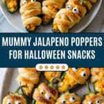 - Fun and Festive Presentation: Wrapping the jalapeños like mummies and adding candy eyes makes these poppers impossible not to smile at.