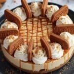 This No-Bake Biscoff Cheesecake is a luscious dessert featuring a crunchy Lotus biscuit base and a creamy, smooth Biscoff-infused cream cheese filling. Topped with lightly whipped cream, extra Biscoff biscuits, and a drizzle of melted Biscoff spread, it’s a delightful treat perfect for any occasion that requires no oven baking.