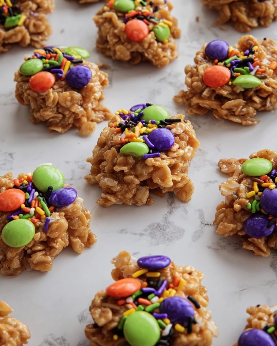 Grab a medium-sized cookie scoop and portion out about 1.5 tablespoons of the sticky mixture onto parchment or wax paper. This size works perfectly for bite-sized cookies that are easy to enjoy without being overwhelming. If you want to get creative, sprinkle some festive Halloween sprinkles or drop a few M&Ms on top for color and a chocolate surprise. Then, just let them cool and firm up—popping them in the fridge helps speed up the process if you’re impatient like me!