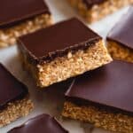 These No Bake Chocolate Oat Bars are a quick and healthy treat combining a crispy, nutty oat base with a rich dark chocolate topping. Made with just four wholesome ingredients, they are gluten-free, dairy-free, and perfect for a guilt-free snack that the whole family will love. Ready in about 15 minutes with no baking required, these bars are both delicious and easy to prepare.