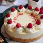 This No-Bake Vanilla Cheesecake features a buttery digestive biscuit base topped with a creamy, velvety vanilla cheesecake filling made from full-fat cream cheese and double cream. Finished with whipped cream and your choice of berries, coulis, chocolate sauce, or caramel, it’s a simple yet indulgent dessert that requires no oven time, perfect for quick and impressive gatherings.