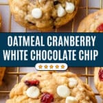Deliciously soft and chewy oatmeal cranberry white chocolate chip cookies featuring a perfect balance of tart sweetened dried cranberries and creamy white chocolate chips. These cookies are easy to make with a simple creaming method and baked to golden perfection for a satisfying treat.