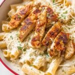 For gatherings or dinners with friends, I like serving this pasta directly in mini cast-iron skillets or deep ramekins, topped with fresh herbs and a parmesan crisp on top. It makes each portion feel personal and special. Another idea is to layer the pasta and chicken in a trifle bowl for a fun family-style presentation that’s both casual and elegant.
