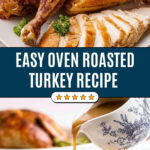 A simple and foolproof recipe for Oven Roasted Turkey with golden, crispy skin and moist, tender meat, accompanied by a rich and flavorful homemade pan gravy made from the turkey drippings.