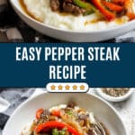 - Serve: Spoon the pepper steak with onions and peppers over a bed of hot mashed potatoes. Serve immediately while warm and enjoy.