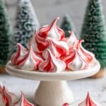 I’m all about keeping things simple when serving peppermint meringues. I usually garnish with a little finely crushed candy cane sprinkled lightly on top of the cookies right after piping (before baking). It adds a subtle crunch and amps up the peppermint vibe. You can also dust them with a whisper of powdered sugar to make them extra pretty.
