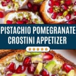 - This Pistachio Pomegranate Crostini recipe makes an impressive holiday appetizer with its vibrant red and green colors and a harmonious blend of flavors and textures.
