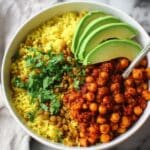 Mama’s Chickpea in Sofrito with Arroz con Gandules is a comforting and flavorful Puerto Rican-inspired vegan dish featuring protein-packed chickpeas simmered in a rich sofrito sauce, served alongside fragrant basmati rice cooked with green pigeon peas. This delicious meal is perfect for meal prep and offers an authentic taste of traditional Puerto Rican cuisine.