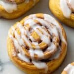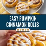 Quick Pumpkin Cinnamon Rolls are soft, fluffy, and packed with cozy pumpkin flavor. These yeast-free rolls are easy to make and perfect for a warm fall breakfast or dessert, featuring a delicious cinnamon swirl and creamy cream cheese frosting.