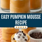 This creamy Pumpkin Mousse is a deliciously light and fluffy dessert perfect for fall. Blending smooth cream cheese with pumpkin puree and warm pumpkin pie spice, then folded into whipped cream, results in a delightful treat topped with whipped cream, chocolate chips, cinnamon, and candied pecans. It’s easy to prepare and makes a great festive addition to any dinner party.
