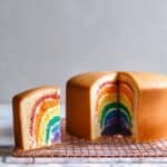 - Allow cake to cool before cutting to maintain the rainbow design when sliced.