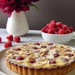 This Raspberry Almond Frangipane Tart is a classic French pastry featuring a tender almond sablé crust filled with a luscious almond frangipane cream, layered with sweet raspberry preserves and topped with fresh raspberries and sliced almonds. Baked until golden and set, it’s a perfect balance of nutty richness and fresh fruit brightness, ideal for a refined dessert or special occasion treat.