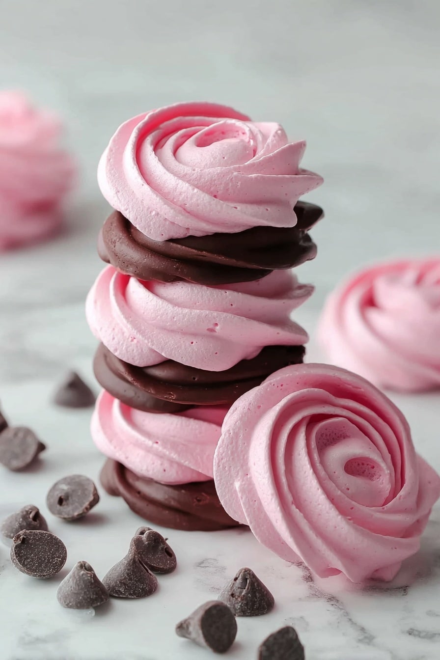 Delight in these Raspberry Meringue Sandwiches featuring light and airy baked meringue rosettes infused with tart raspberry jam and filled with a silky whipped dark chocolate ganache. This elegant confection combines crisp meringue shells with rich, creamy chocolate and fruity raspberry, creating a dessert that’s as beautiful as it is irresistible.