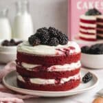 This Red Velvet Cake with Blackberry Cream Cheese is a moist and decadent dessert combining classic red velvet flavors with a luscious blackberry cream cheese frosting. The cake layers are tender and rich, enhanced by a hint of cocoa and coffee, while the fresh blackberry frosting adds a tangy sweetness and vibrant color, making it perfect for special occasions or a delightful treat.