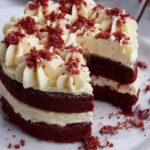 This classic Red Velvet Cake is soft, moist, and beautifully vibrant, featuring a light chocolate flavor with a hint of vanilla, enhanced by the iconic red color. It’s generously layered and frosted with a rich, creamy full-fat cream cheese frosting, making it a decadent treat perfect for celebrations or any special occasion.