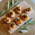These Roasted Honeynut Squash Crostini with Whipped Ricotta and Fried Sage are a perfect appetizer that combines the natural sweetness of roasted honeynut squash with creamy, whipped ricotta cheese and crispy fried sage leaves atop crunchy toasted baguette slices. Ideal for entertaining, this elegant yet simple dish offers a delightful mix of textures and savory flavors.