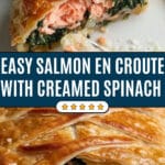 Yes! You can prepare the creamed spinach and assemble the salmon en croûte the day before, then keep it wrapped in the fridge until you’re ready to bake it. This cuts down cooking time on the day of serving.