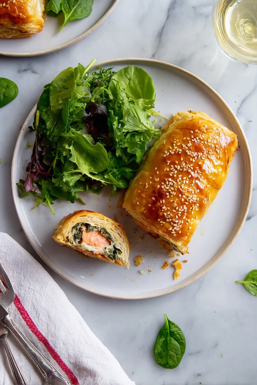 You know, this Salmon Wellington with Cream Cheese Filling Recipe has become one of my cherished go-to dishes for impressing friends or treating myself on a cozy night. It’s comforting yet elegant, showing up as something special without extra stress. The creamy, herb-filled middle, the crispy buttery pastry, and the fresh horseradish sauce all come together so perfectly — I really hope you enjoy making and sharing it as much as I do. Give it a try and watch it become one of your favorites too!