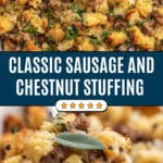 What makes this Sausage and Chestnut Stuffing Recipe so comforting is how the ingredients come together — you’ve got the crumbly goodness from cornbread and white bread, savory meatiness from sausage, and that lovely crunch of chestnuts spruced up with fresh herbs. When shopping, look for fresh herbs and good-quality sausage to really make these flavors sing.