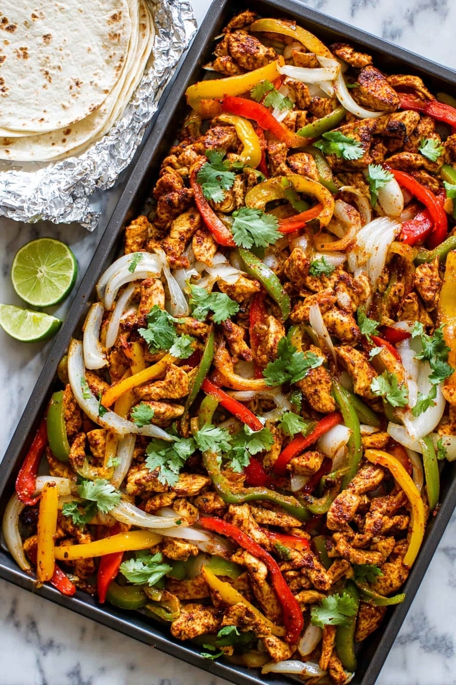 These Sheet Pan Chicken Fajitas are an easy and delicious dinner option featuring seasoned chicken breasts and colorful bell peppers roasted together on one pan. Served warm in flour tortillas with fresh lime, cilantro, and your favorite toppings, this recipe delivers vibrant Tex-Mex flavors with minimal cleanup.
