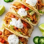 - Serve: Spoon the seasoned shredded chicken into warmed tortillas or taco shells and garnish with your favorite toppings such as cilantro, lime, cheese, or avocado.