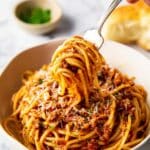 This bolognese freezes like a dream. I portion it into freezer-safe containers and it lasts up to 3 months. When I’m rushed, I pull a container from the freezer in the morning, and by dinner time, thawed or reheated on the stove or microwave, it tastes almost like freshly made.