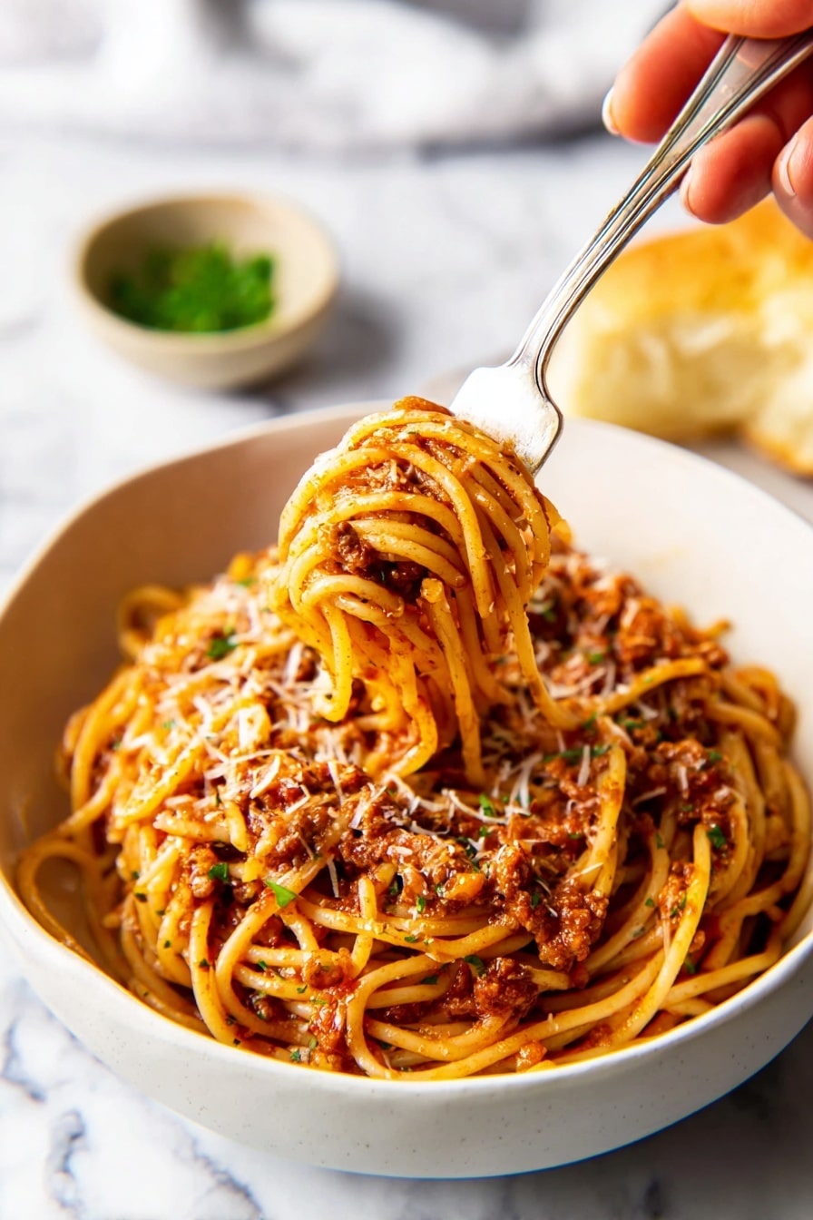 I always top my bolognese with freshly grated Parmesan cheese—there’s just no substitute for how it melts into the warm sauce. Sometimes, I sprinkle chopped fresh basil or flat-leaf parsley for a burst of color and freshness that brightens each bite. These little touches make the dish feel just a bit more special, especially when serving guests.