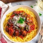 I love serving this with wide noodles like pappardelle or simple spaghetti—both soak up the sauce beautifully. However, feel free to use any pasta you like, including rigatoni or penne, for a heartier bite.